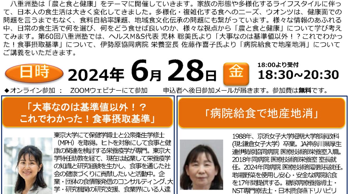 ◯第60回八重洲塾のお知らせ皆で農と食を学び語らう場「八重洲塾」